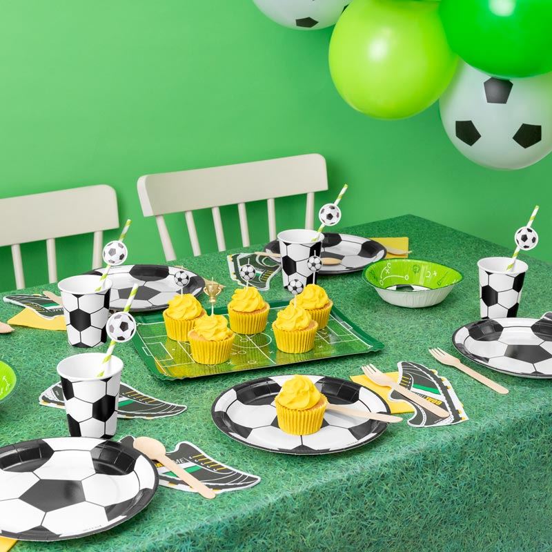 Además, combina a la perfección con platos, vasos, pajitas y globos futboleros para crear una experiencia inmersiva que encantará a grandes y pequeños.