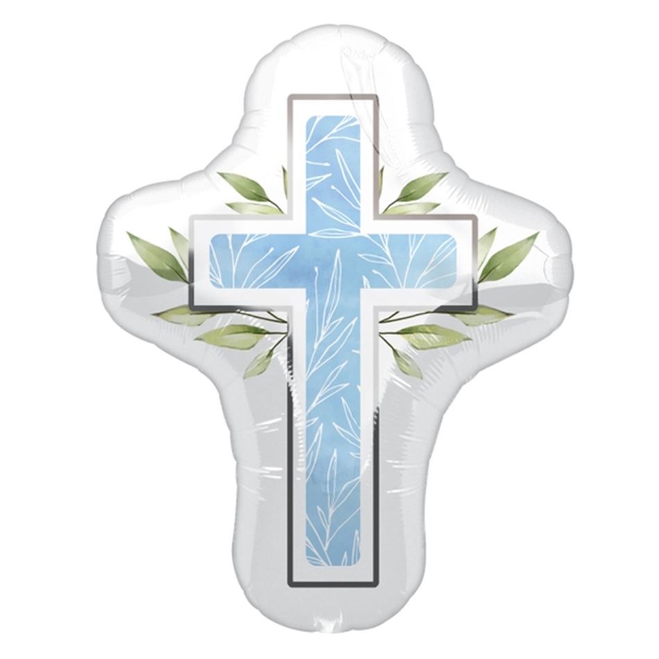 Añade este globo cruz azul a tu decoración y consigue un ambiente elegante, simbólico y muy especial para ese día único.