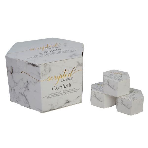 Reparte entre tus invitados este magnífico y original confeti en forma de corazón de nuestra colección de mármol. Contiene 1 mini cajas de confeti plateado y blanco. Caja individual mide aprox. 3 x 5 x 10cm.
