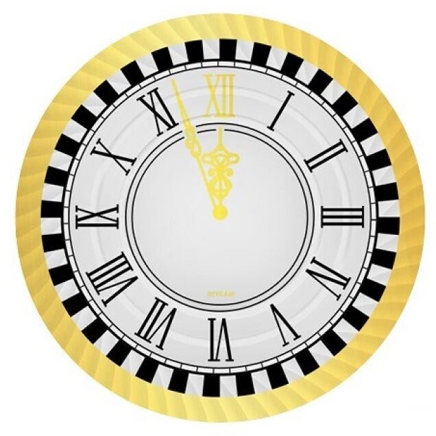 Diseño reloj de medianoche: con números romanos, estilo vintage y borde dorado.