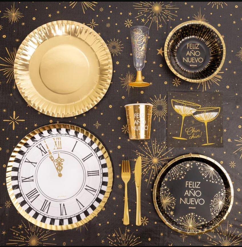 Coloca estas bandejas como platos base bajo platos pequeños para una mesa elegante y temática. También puedes usarlas para presentar las 12 uvas, bombones, quesos o tapas para la cena. Combínalas con vajilla dorada o negra, servilletas con mensajes de celebración y centros de mesa con velas para un look glamouroso y festivo.