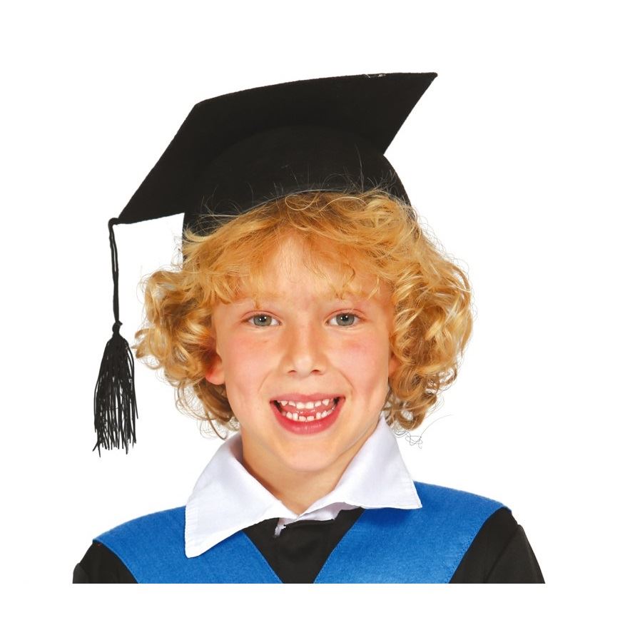 Gorro de estudiante INFANTIL de color negro. Talla única. Unisex Si necesita mas cantidad por favor llámenos al 91.628.14.59