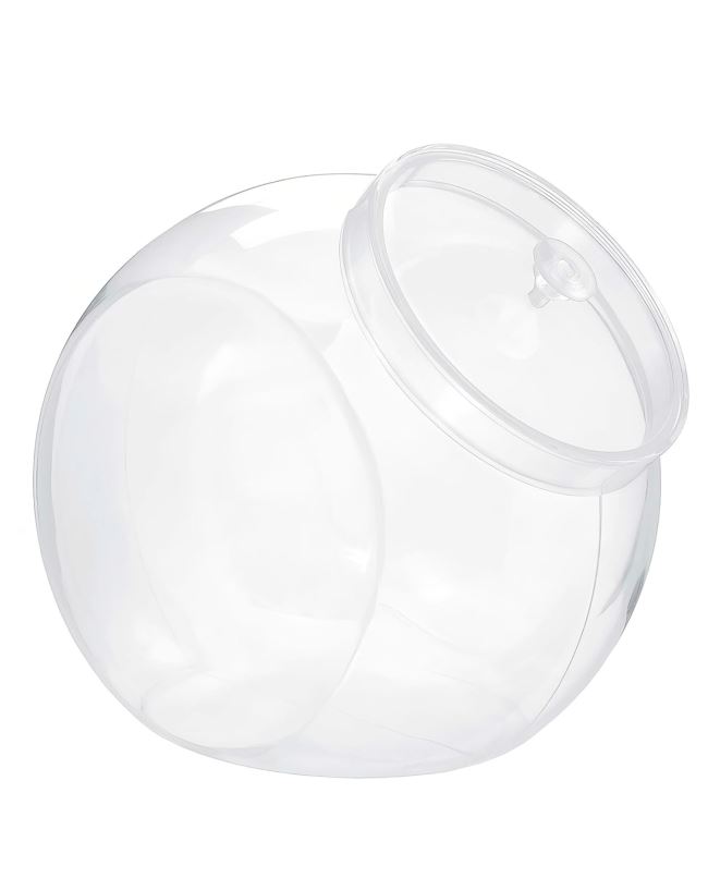 El bol con tapa de plástico reutilizable 19,8 x 14,4 cm es la solución perfecta para presentar dulces, caramelos o snacks en fiestas y celebraciones. Su diseño transparente tipo tarro permite ver el contenido fácilmente, aportando un toque decorativo y práctico a mesas dulces y candy bar.