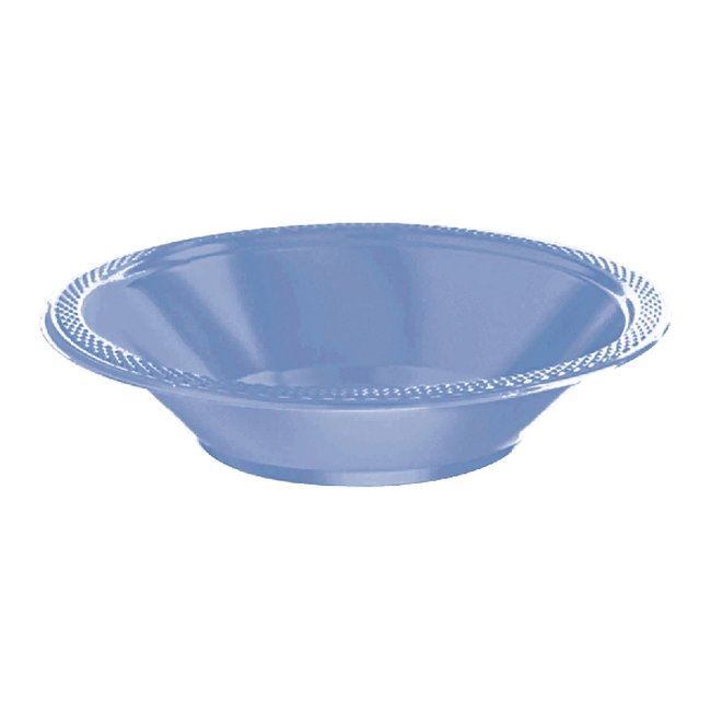 Boles de plástico fuerte de color azul pastel. Miden aprox. 18cm de diámetro x 4,5cm de alto. Paquete de 10.Cubica aprox 355ml