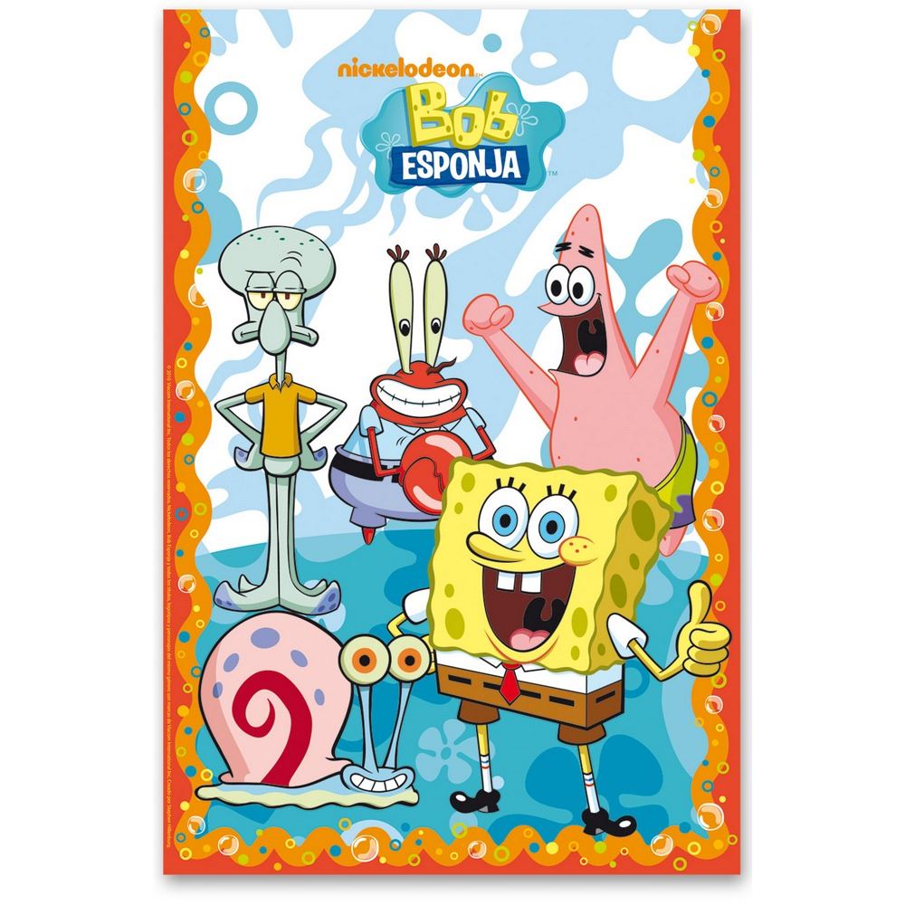 Mantel de Bob Esponja de papel. Ideal para tus Fiestas en el fondo del mar!!! Medida aprox 120cm x 180cm. Celebra y decora tu mesa de cumpleaños, con nuestro amigo preferido del fondo del mar.