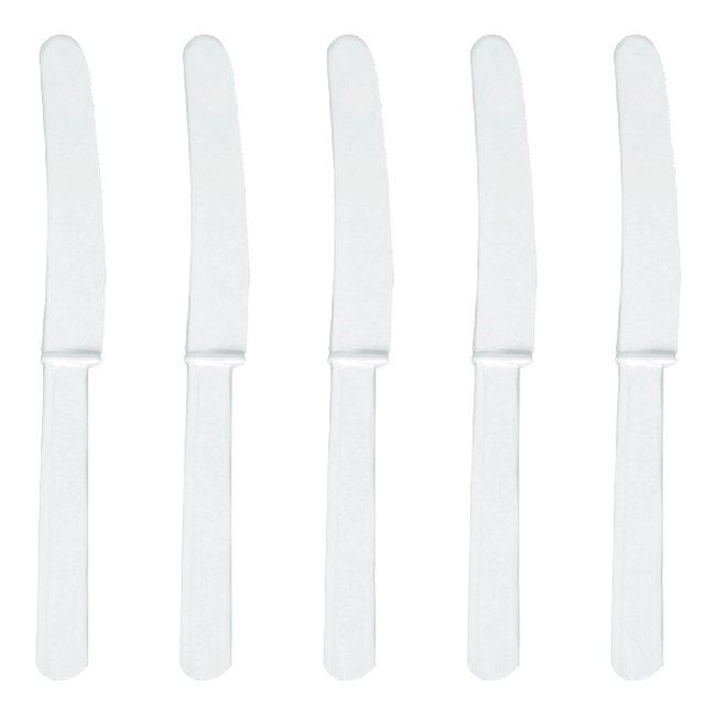 Cuchillos de plástico de color Blanco . Miden aprox. 16cm de alto. Paquete de 10.
