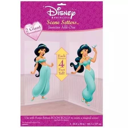 Dos pósters de plástico transparente con imágenes de Jasmine, para adornar paredes, puertas, etc. Utilízalos sólos o encima de un fondo de pared jardín o princesas. Miden aprox. 85 x 127cm cada uno.