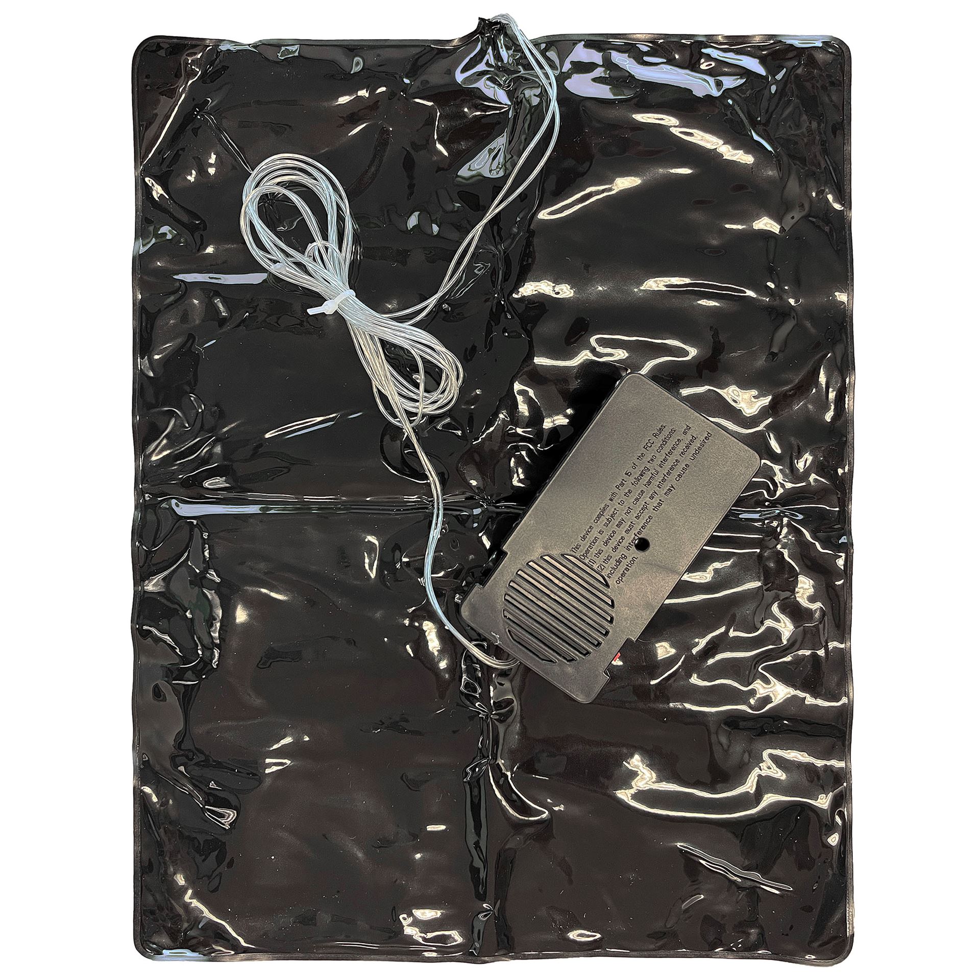 1. Coloca el dispositivo sonoro centrado bajo una alfombra o felpudo.