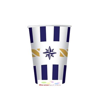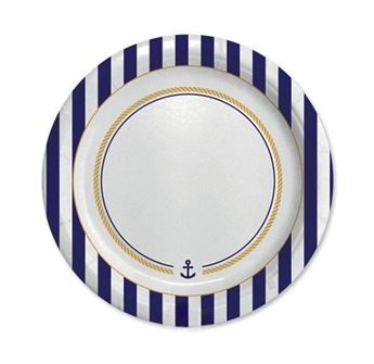 Vajilla desechable marinera: platos, vasos, servilletas y manteles con anclas, rayas y motivos náuticos