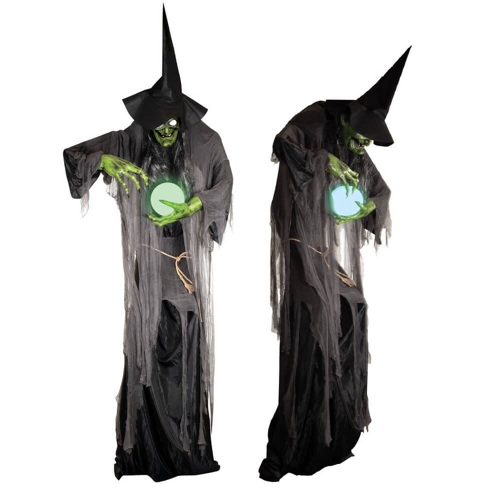 • Diseño detallado: rostro envejecido, telas rasgadas, bola mágica y estética brujesca que encaja en ambientes oscuros