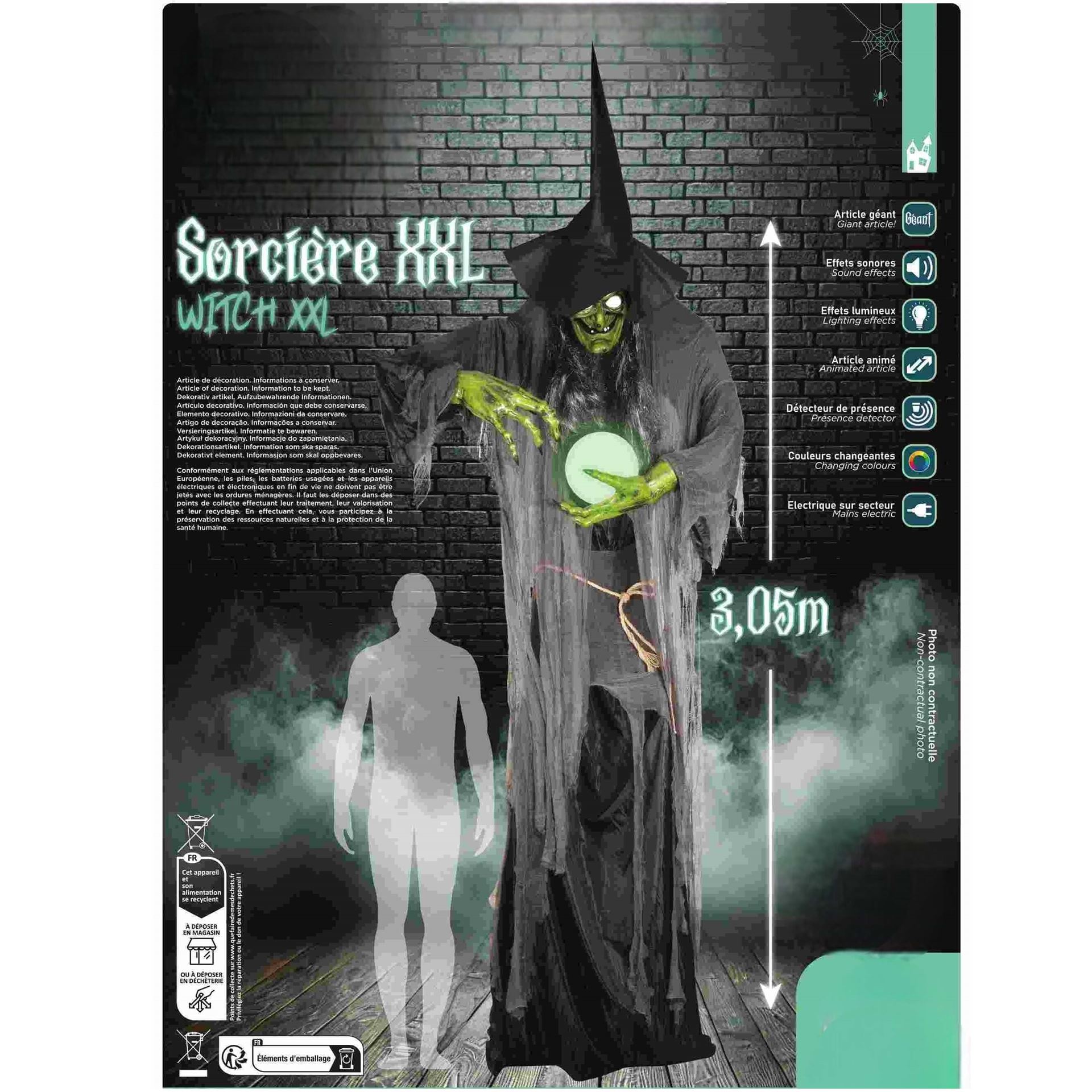 Figura Bruja XXL con Luz, Movimiento, Sonido y Sensor (305cm)