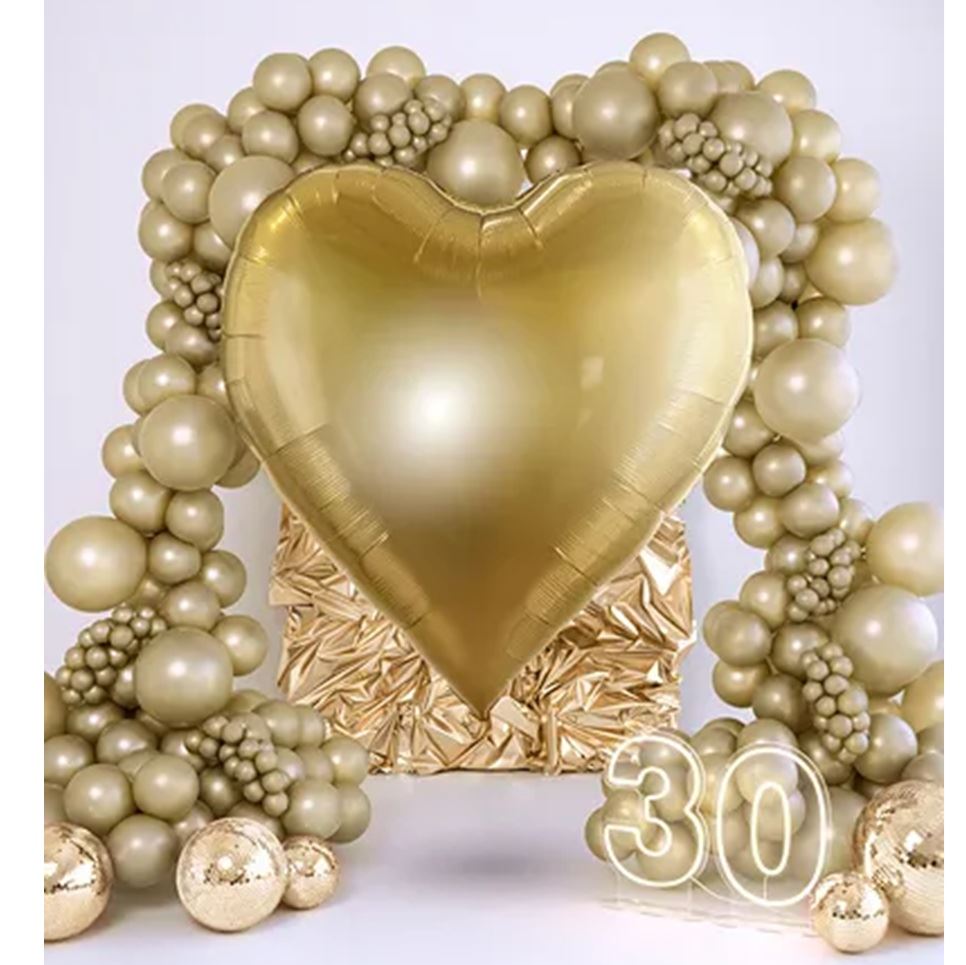 Haz que tu decoración brille con este espectacular globo de foil en forma de corazón gigante. Con un acabado dorado metalizado y una forma elegante, este globo XXL es perfecto para crear un punto focal inolvidable en cumpleaños, aniversarios, bodas o sesiones de fotos.