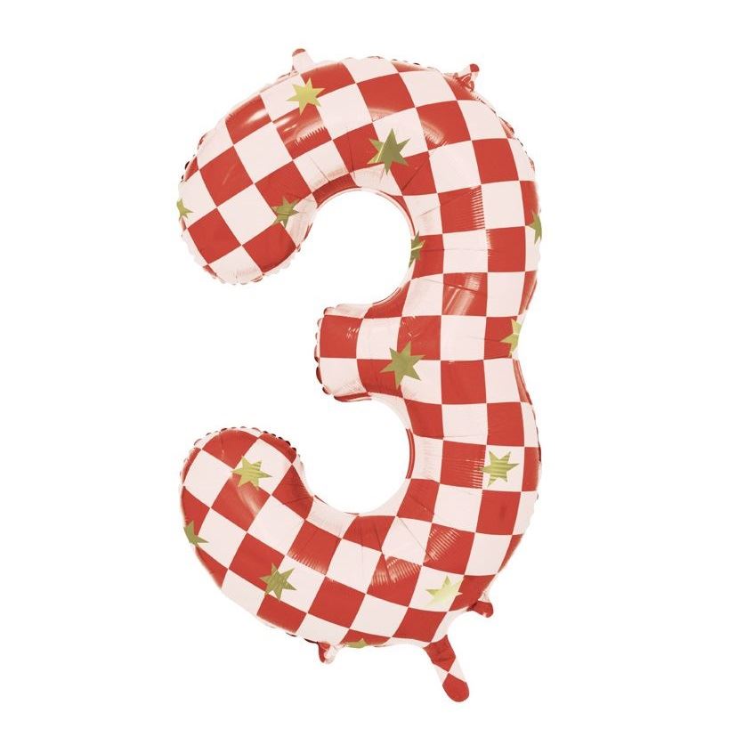 Añade color y estilo a tu fiesta con el Globo Número 2 gigante cuadros rojos y estrellas.