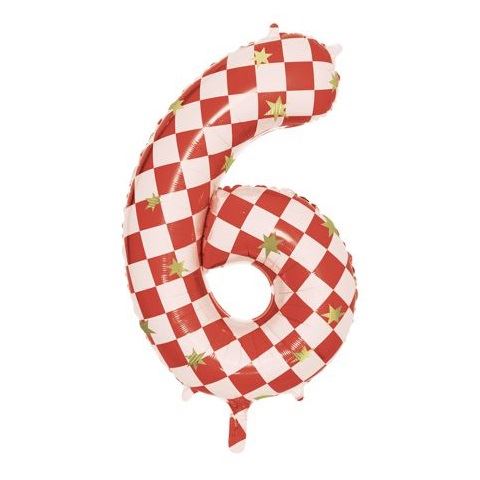 Globo Número 6 gigante cuadros rojos y estrellas (110 cm)