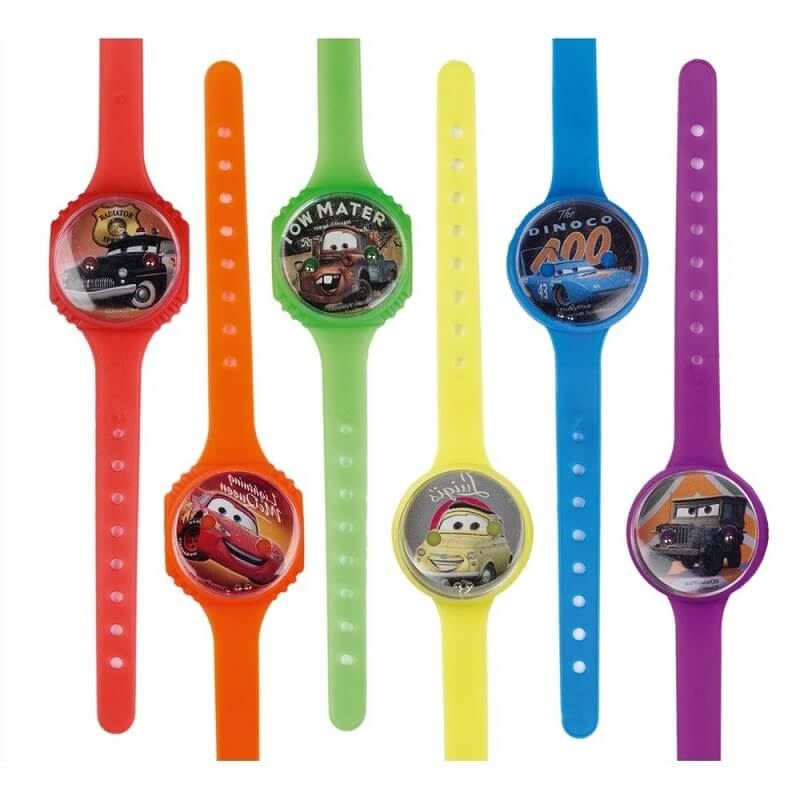 25 relojes con imágenes de diferentes protagonistas de Cars Disney. Ideal para relleno de piñatas o relleno de cajas de chuches, para rellenos de piñatas o para regalar a las peques en sus cumpleaños o fiestas infantiles. Tus invitados se divertirán intentando terminar el juego antes que nadie. La bolsa trae 25 modelos surtidos. Tamaño infantil.