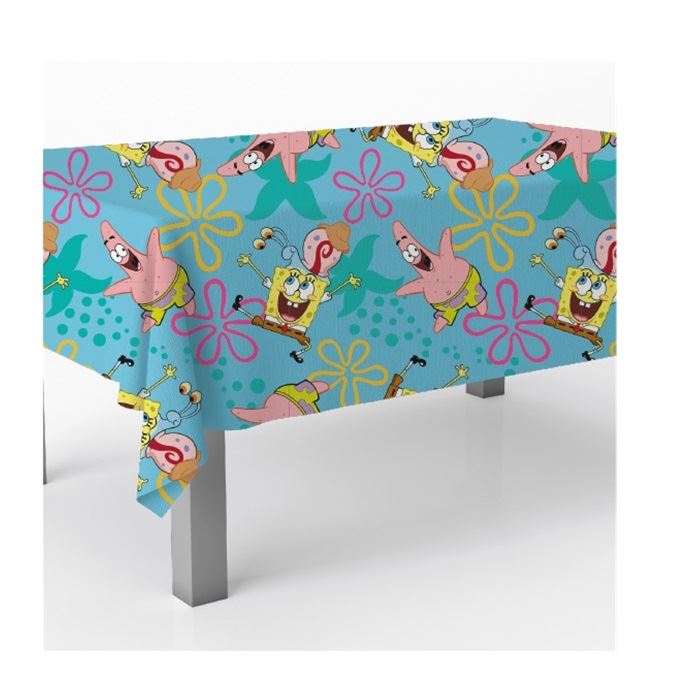 Mantel de Bob Esponja de papel. Ideal para tus Fiestas en el fondo del mar!!! Medida aprox 120cm x 180cm. Celebra y decora tu mesa de cumpleaños, con nuestro amigo preferido del fondo del mar.