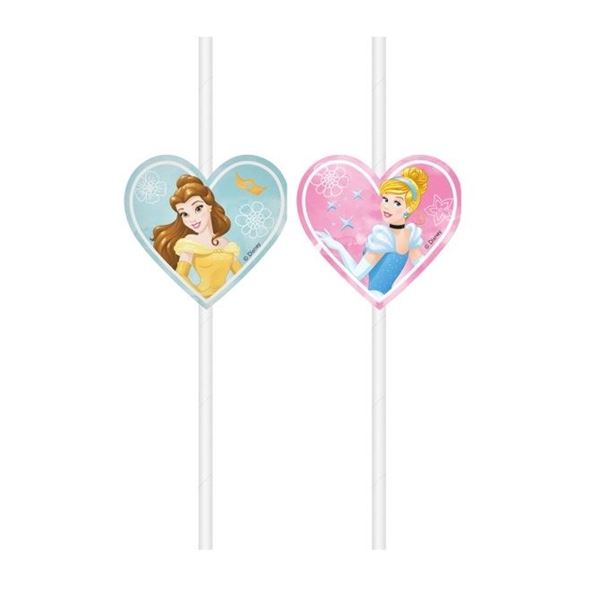 Pack de 4 pajitas de papel de las princesas Disney. Pajitas para meter en su vasito y repartir a tus invitados. Un detalle muy chulo y original que les gustará a niños y mayores.