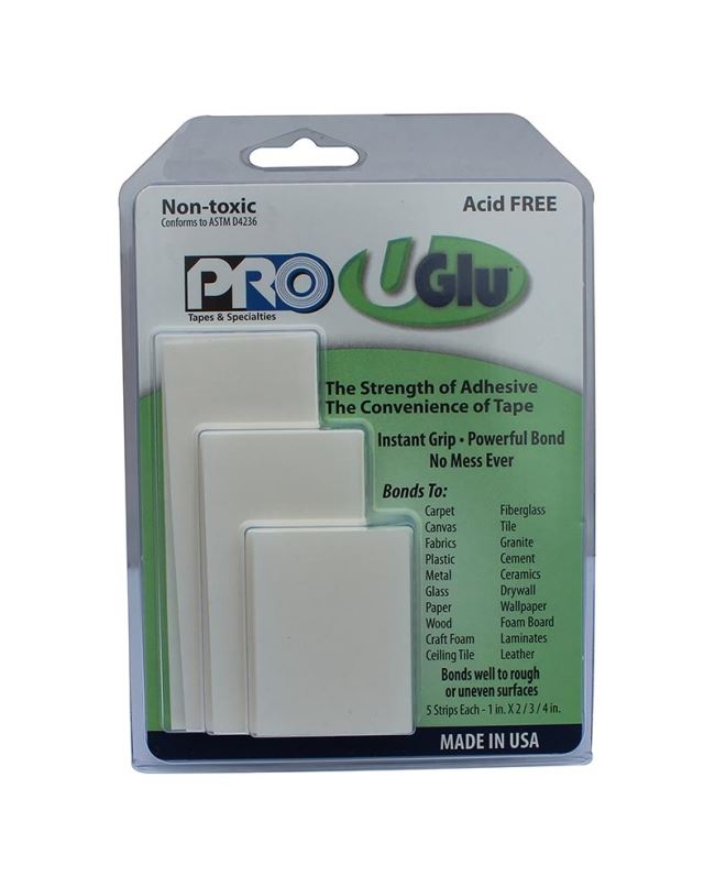 Pro UGlu 200 – Pack 15 Tiras y Cuadrados Adhesivos Doble Cara (3 Tamaños)