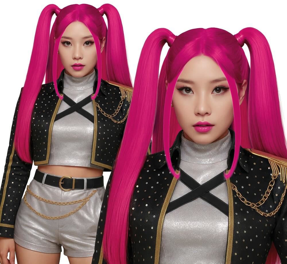 Peluca Pink Nova – Guerreras K-Pop Demon Hunters, coletas fucsia cosplay