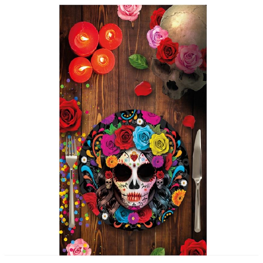 Mantel Catrina plástico (274cm x 137cm) Especial Halloween. Entrega 24/48 horas.