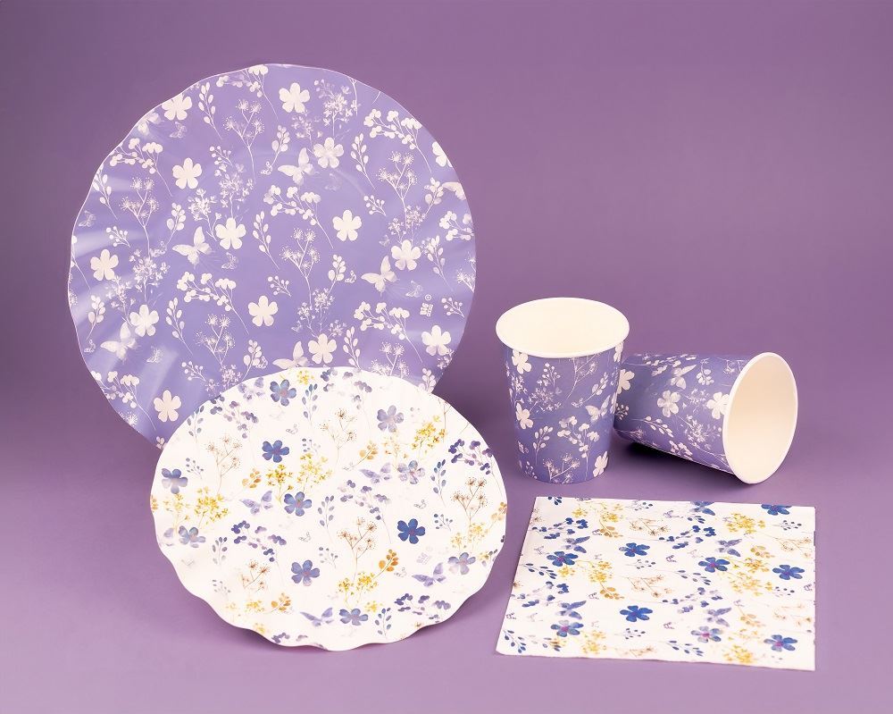 Combínalos con vasos, servilletas y centros de mesa en tonos lilas, blancos o dorados para lograr una presentación armoniosa y delicada.