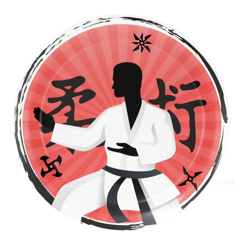🥋 Platos Karate para Fiesta – Cartón 23cm (8 uds) ¡Dale un golpe de estilo a tu celebración con estos espectaculares platos de karate! Diseñados para pequeños guerreros y amantes de las artes marciales, estos platos de cartón de 23 cm son el complemento perfecto para fiestas temáticas de karate, judo o ninjas. Con un diseño que muestra a un karateka en plena acción sobre un fondo rojo con detalles en negro y kanjis japoneses, estos platos no solo son funcionales, ¡también decoran la mesa como verdaderos campeones!
