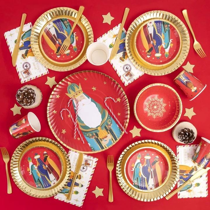 6 platos de Reyes Magos para Navidad son perfectos para darle un toque mágico a tu mesa festiva. Son de cartón, tienen un tamaño de 23 cm y vienen en un paquete de 6 unidades. Cada plato está decorado con una ilustración de los Reyes Magos, lo que los convierte en una opción encantadora para servir tus deliciosas comidas y postres en esta temporada navideña. Celebra la llegada de los Reyes Magos con estilo gracias a estos platos festivos. Perfecta para el ROSCÓN DE REYES