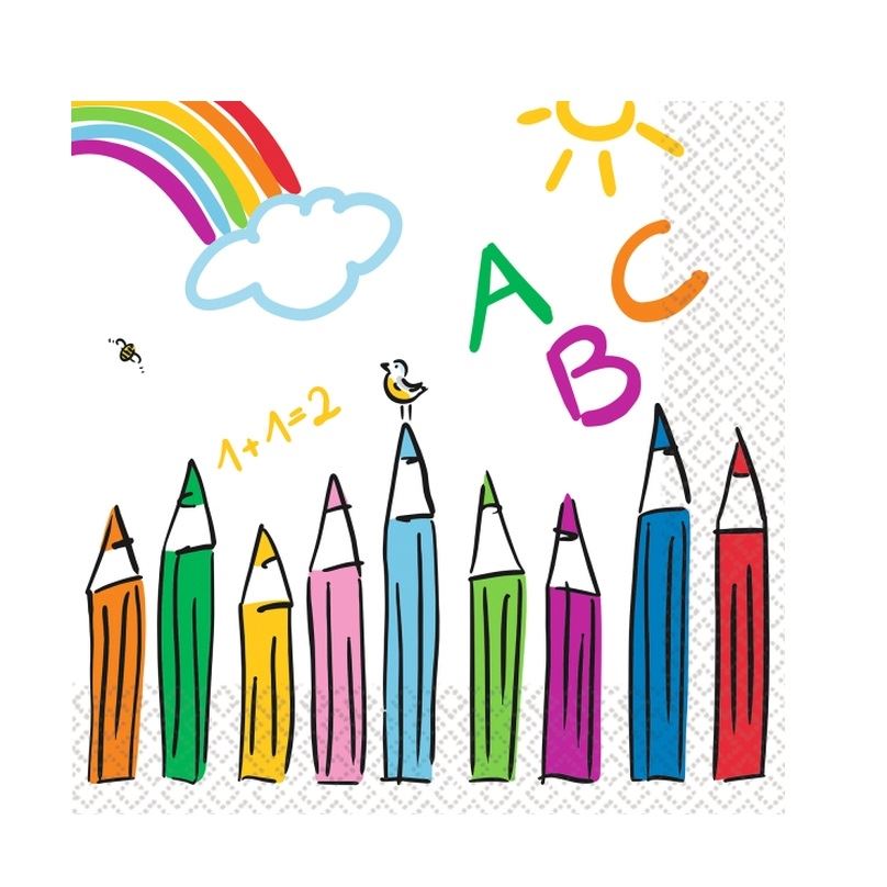 Nuestras servilletas "Mi Cole" son el complemento perfecto para tu fiesta temática infantil. Con un diseño de lapices ABC letras, estas servilletas añaden un toque educativo a la celebración.