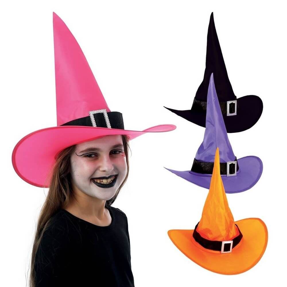 Haz que los peques brillen en Halloween con este sombrero de bruja infantil. Vienen en distintos colores y con una pequeña cinta negra con hebilla de decoración. Perfecto para completar disfraces mágicos y divertidos. Se vende por unidad. Colores disponibles según disposición.
