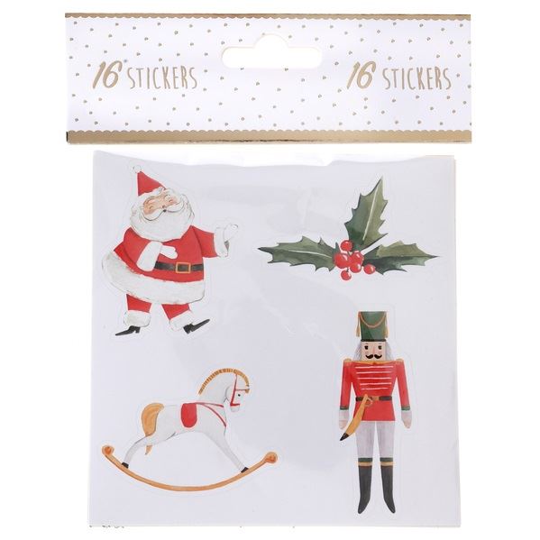 Añade un toque especial a tus regalos o decoraciones navideñas con este set de pegatinas de estilo Cascanueces. Incluye figuras icónicas como Papá Noel, un soldado de cascanueces, una rama de acebo y un caballo de balancín. Estas pegatinas miden entre 7 x 5 cm y 3 x 7 cm, ideales para personalizar envoltorios de regalos, adornar vasos o detalles decorativos en tu hogar. Perfectas para darle un aire festivo y tradicional a tus celebraciones navideñas.