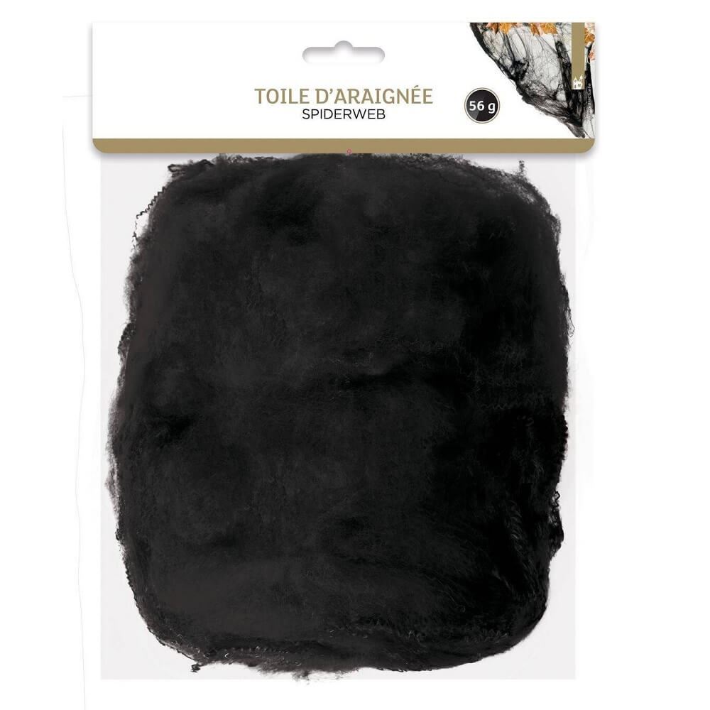 Telaraña artificial en color negro. Colócalo en muebles, en puertas, ventanas, del techo, en tu disfraz, en la mesa… Una infinidad de ideas para este Halloween o fiesta de disfraces. Contiene 56 gramos aprox. Es de tela resistente, ignífuga y elástica.