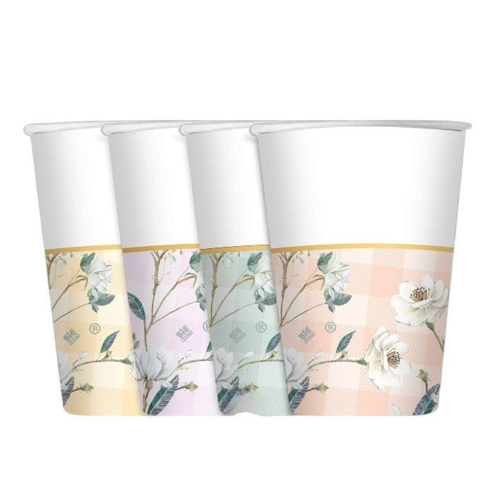 ✅ Pack surtido: 8 vasos en total, con 4 diseños distintos que combinan entre sí. ✅ Capacidad: 250 ml, ideales para refrescos, zumos, cócteles suaves y bebidas frías o calientes. ✅ Material: Cartón resistente ✅ Diseño: Flores delicadas sobre cuadros vichy en tonos pastel, con un elegante borde dorado.