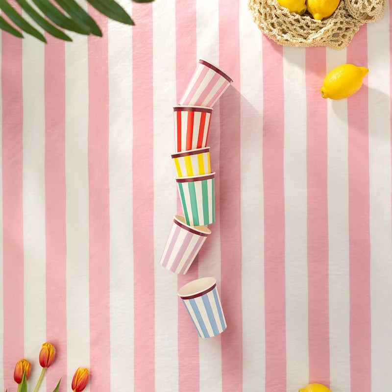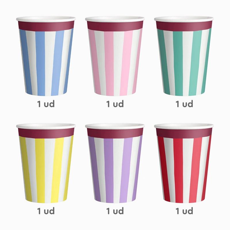 Convierte cualquier celebración en una fiesta llena de color y estilo con estos vasos de cartón a rayas surtidas. 🎊✨