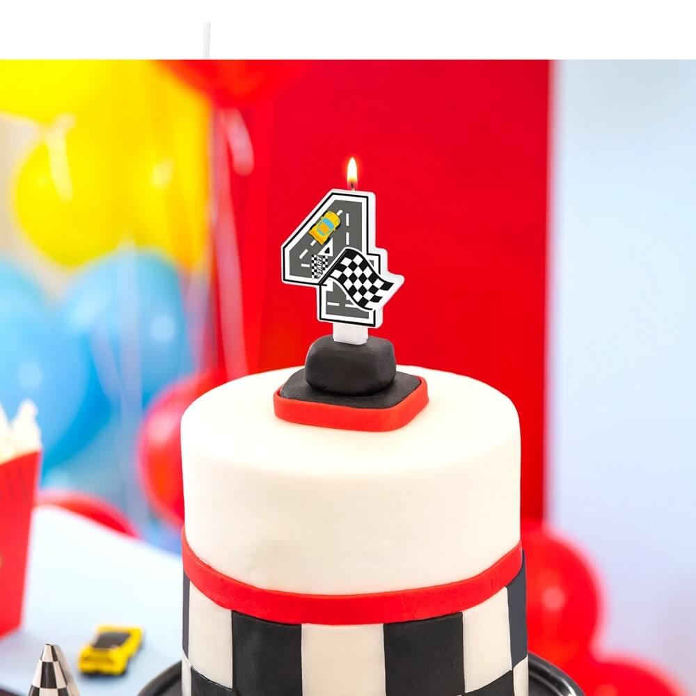 La Vela para Pastel Coche de Carreras Número 4 (7 cm) es el detalle perfecto para una fiesta temática racing. Con diseño de circuito, coche y bandera a cuadros, convierte la tarta en el centro de atención y hace que el momento de soplar las velas sea aún más especial.