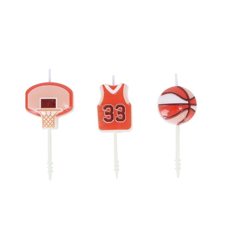El pack 3 velas cumpleaños Baloncesto es el complemento perfecto para decorar la tarta de una fiesta temática de basket. Incluye tres diseños diferentes: canasta, camiseta con número 33 y balón de baloncesto, ideales para sorprender a los amantes del deporte.