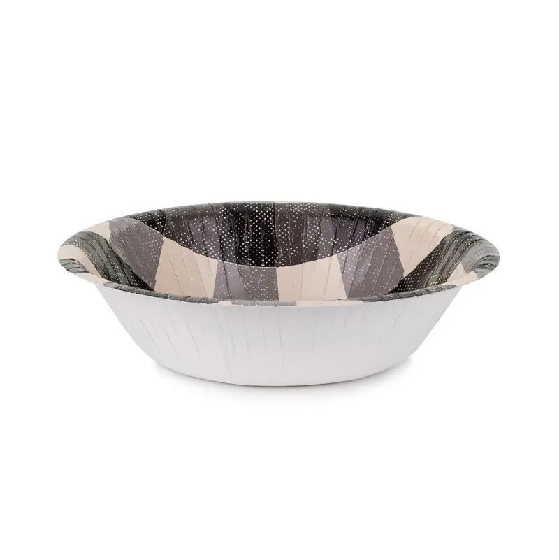 Los bowls de papel con diseño de cuadros son perfectos para servir comida en barbacoas, fiestas al aire libre, cumpleaños o reuniones informales. Su diseño estilo picnic en tonos negro, gris y crema aporta un toque rústico y moderno a la mesa.