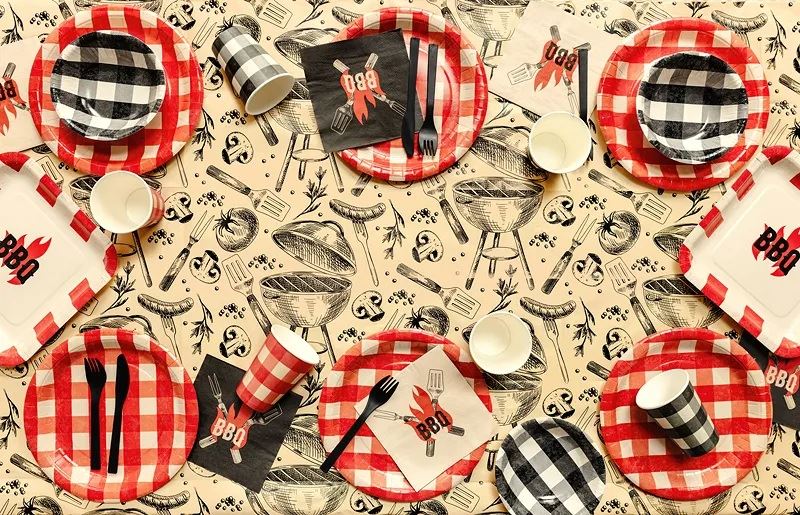 El diseño de cuadros combina perfectamente con vajillas de picnic, manteles de barbacoa, vasos y platos de estilo rústico.