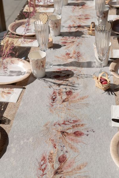 Precioso camino de mesa con el tema Romance. Un precioso camino de mesa de tela de gasa para cualquier mesa, un camino resistente y reutilizable. Mide aprox 3 metros de largo y 45cm de ancho. Te sirve para la mesa para cualquier evento como Comuniones, Bautizos, Celebraciones y Cumpleaños