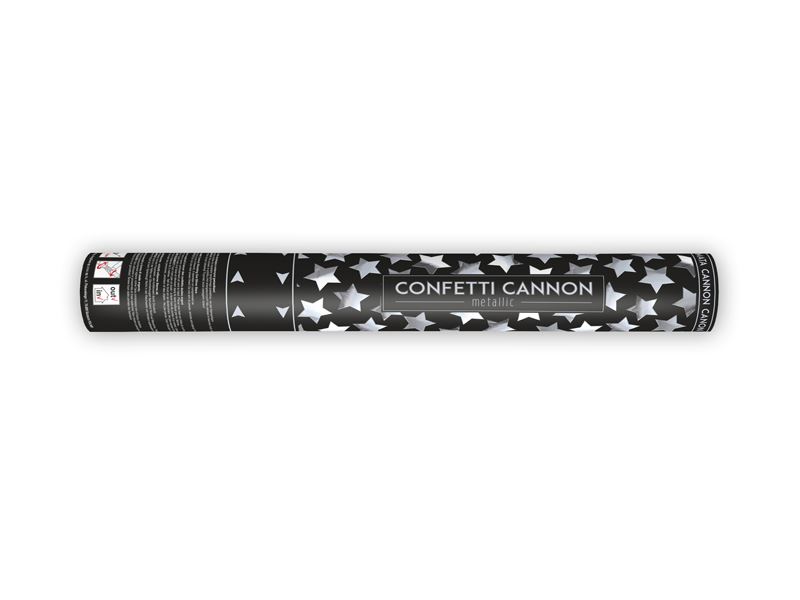 Lanzador de confeti de estrellas plateadas brillantes, perfecto para recibir a los novios a la salida de la iglesia o juzgados, para celebrar la Nochevieja la victoria de tu equipo de fútbol o cualquier celebración. Se vende por unidad. Cañón de 40cm.
