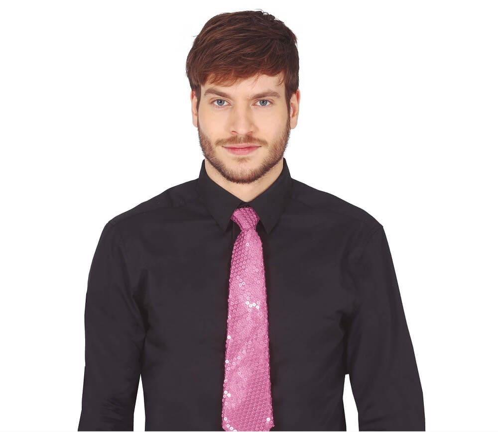 Corbata de Lentejuelas Rosa Neón – 37 cm