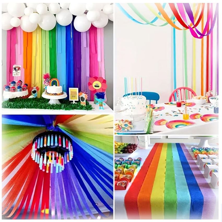 Puedes colgar las serpentinas del techo, crear fondos decorativos o enrollarlas alrededor de columnas, barandillas o mesas. Son perfectas para combinar con globos, guirnaldas y otros accesorios decorativos en tonos coordinados para lograr una decoración completa.