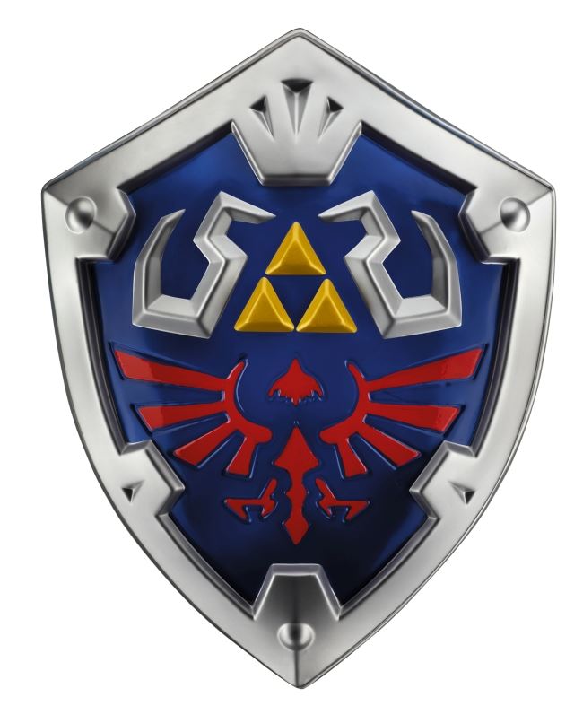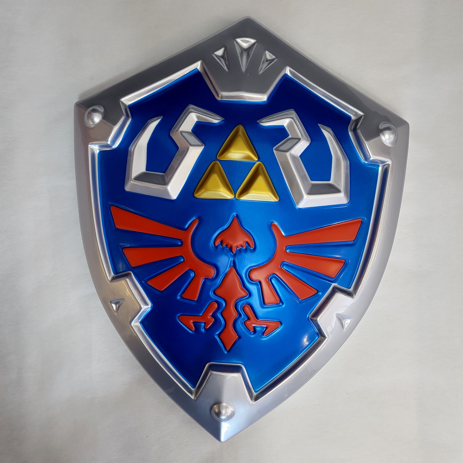 El Escudo de Link del popular videojuego Zelda de Nintendo. Es de plástico duro y mide 48cmx38cm aprox.