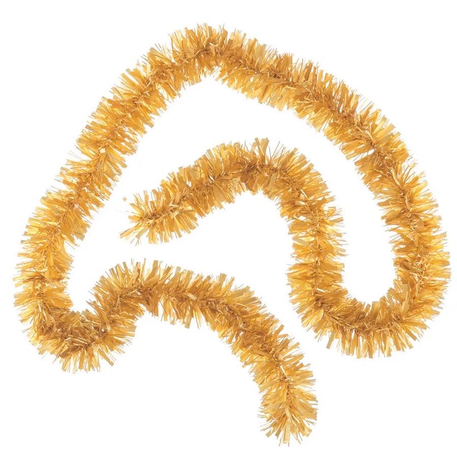 Espumillón DE CALIDAD en color dorado brillante, resistente y muy llamativo. Este espumillón mide aprox 1.8 metros de largo y 7cm de ancho. Perfecto para decorar tu fiesta de Navidad, año nuevo, el árbol. Disponible en más colores.