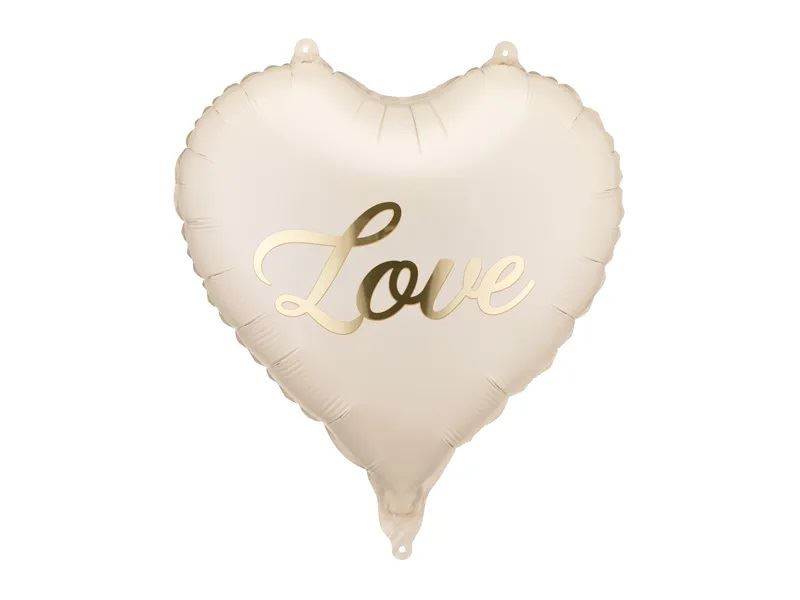 Globo Corazón Love Beige con Dorado 45 cm – Aluminio para Bodas y Eventos