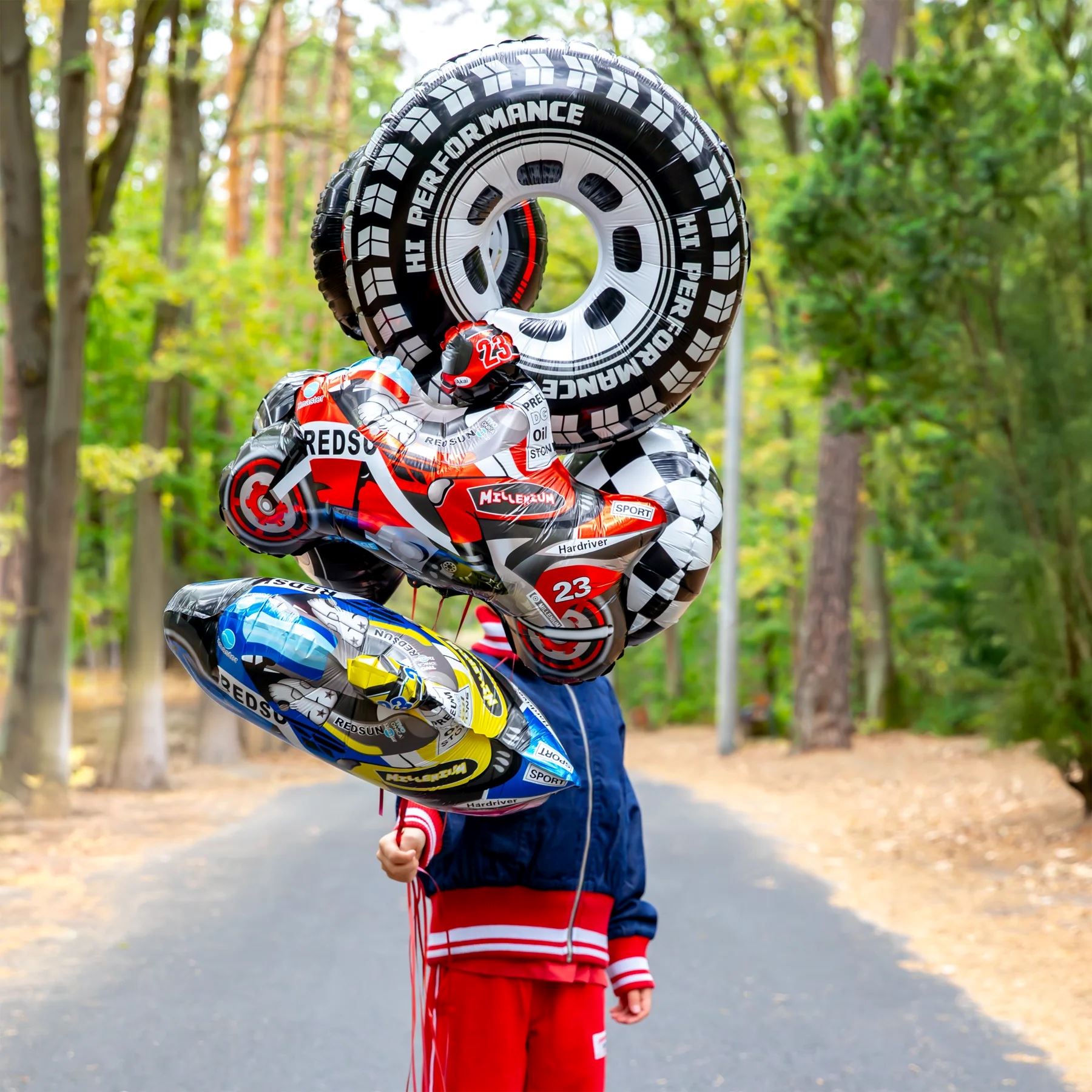 🎈 Consejo decorativo: Combínalo con globos de látex en rojo, amarillo y negro para crear un rincón de carreras impresionante. 🏁