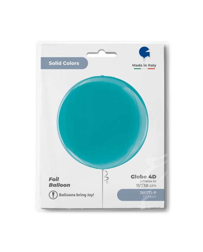 El globo esférico 4D color Tiffany de 38 cm es una pieza decorativa moderna y muy llamativa para todo tipo de celebraciones. Su forma completamente redonda, estilo Orbz, crea un efecto visual limpio y elegante que destaca en ramos de globos, centros de mesa, arcos y decoraciones fotográficas. El acabado metálico en tono Tiffany aporta luminosidad y un toque sofisticado que transforma cualquier espacio.