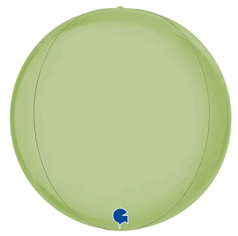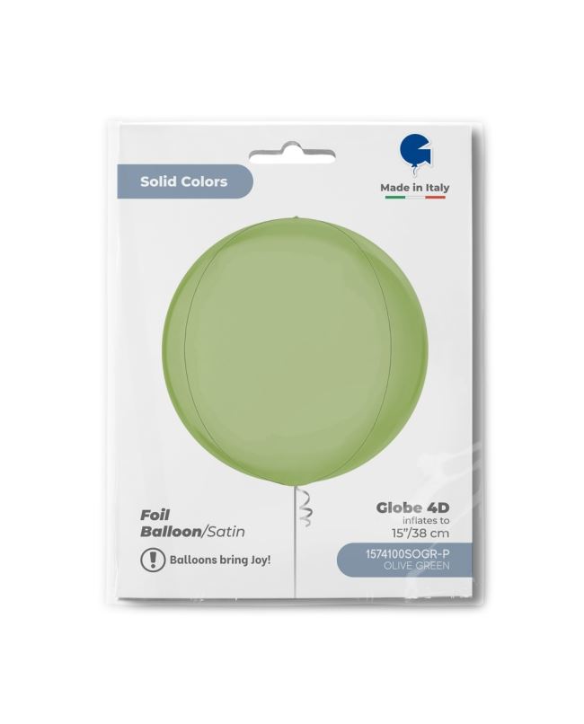 Globo foil 4D verde oliva satinado 38 cm (15”) – por unidad es un globo decorativo con forma de esfera perfecta, ideal para crear volumen y dar un toque natural y elegante a cualquier decoración de fiesta. Su color verde oliva satinado es muy usado en eventos boho, temáticas naturales y celebraciones modernas.