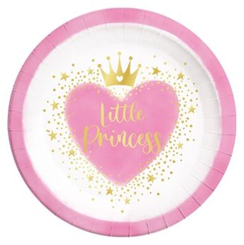 ¡Prepárate para una fiesta llena de magia y diversión con estos encantadores platos Little Princess! Con un diseño adorable que combina un borde rosa con corazones y estrellas, junto con la frase "Little Princess", estos platos son el complemento perfecto para celebrar el cumpleaños de tu pequeña princesa. ¡Imagina la sonrisa en su rostro cuando vea estos platos en la mesa de la fiesta, listos para servir su comida favorita y deliciosos postres! Con 8 unidades en cada paquete, tendrás suficientes para todos los invitados, haciendo que cada bocado sea una experiencia mágica. ¡Haz que el cumpleaños de tu princesa sea inolvidable con estos adorables platos Little Princess! Medida 23cm