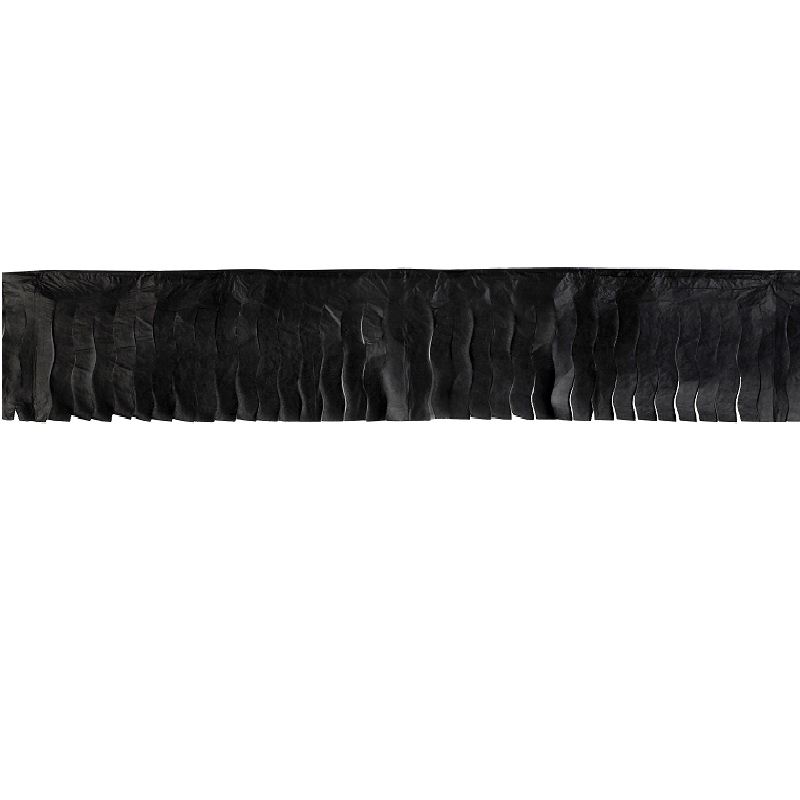 Una guirnalda de papel con flecos, de color negro, ¡muy decorativa y super de moda! Mide aprox. 17cm de alto x 50m de largo.