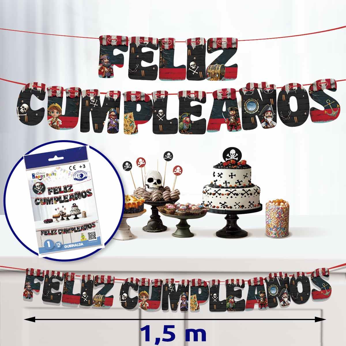 Guirnalda pirata Feliz Cumpleaños cartón (1.5m)